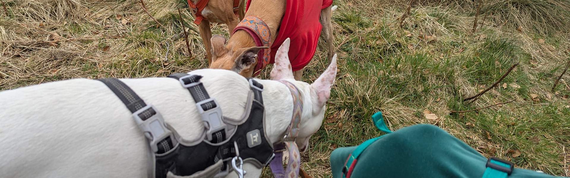 Bruno is settling in well to his foster home thanks to the hard work of his foster humans. He was initially quite overwhelmed by the sheer wonderfulness of home life and was being quite "over-the-top" with the resident dogs, trying to get them to play, etc. He's starting to learn that being more calm has better results as it doesn't chase the tiny pods away up the stairs! Being deaf means a whole steep learning curve for everyone involved but they are all doing a sterling job. Bruno is a stunning medium sized pod boy who is one year old and is deaf. We were asked by Paradise Kennels if we could take him on and they would go and collect him. So today he arrived with Colleen and looks like a fab boy. We are just going to confirm he is sociable with the other dogs and, if so, he has a foster offer in Scotland so would be travelling soon. More info to follow