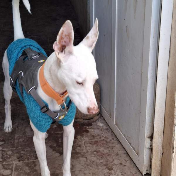 Bruno is a stunning medium sized pod boy who is one year old and is deaf. We were asked by Paradise Kennels if we could take him on and they would go and collect him. So today he arrived with Colleen and looks like a fab boy. We are just going to confirm he is sociable with the other dogs and, if so, he has a foster offer in Scotland so would be travelling soon. More info to follow