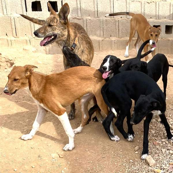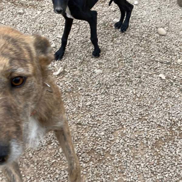 Estrella is Luna's sister and is mum to the pups, so she has gone to a different residencia to let her stay with her babies as she enjoys their company so much. A pod x galgo, like Luna, she has a lovely brindle coat and just the perfect amount of fuzziness. She is a sweet natured girl who loves to play with her babies and loves a bit of human affection too.