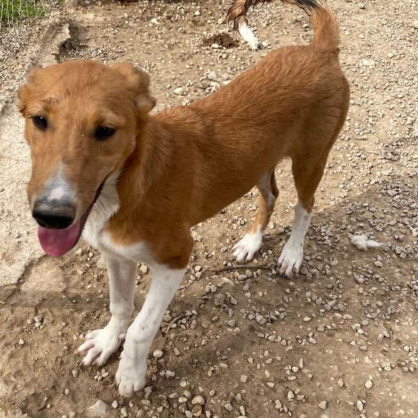 Update 3/10/25 Polyanna and the pups have arrived. All well and settling in at Corinna's Pollyanna Popsocks is one of the 6 galgo x podenco puppies we have reserved from the perrera along with their mum, auntie and 4 other adults. Pollyanna Popsocks is 3-4 months and will have her final rabies vaccine this week then we will move her to her new residencia kennels until she gets a place on the Happy Van